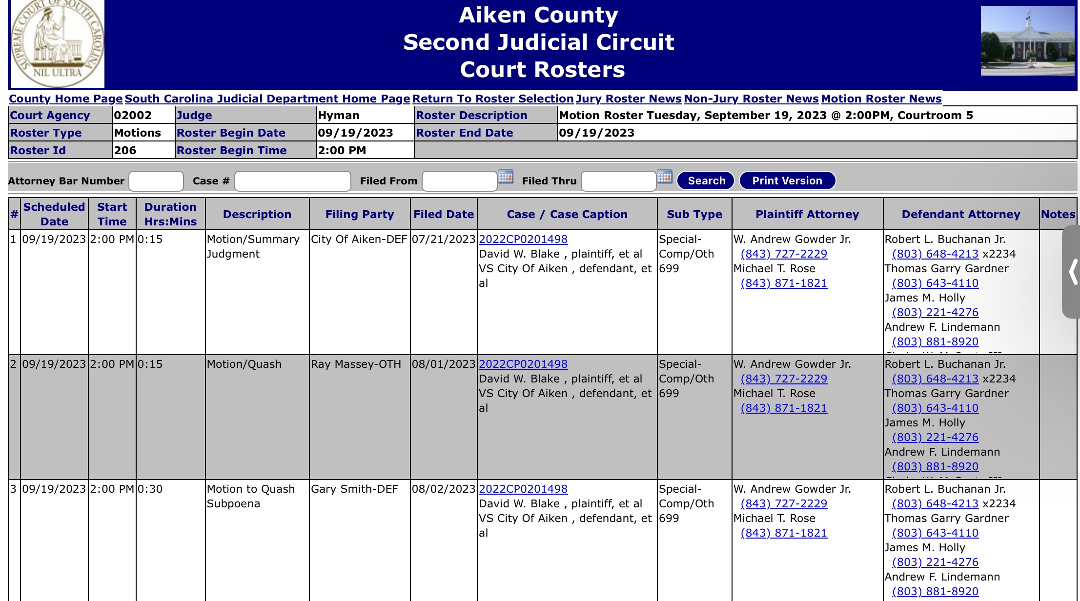 The Affidavit is in opposition to the City of Aiken’s Motion to Quash Subpoenas and Motion to Stay Discovery, which is scheduled to be heard this coming Tuesday, September 19, 2023 by the Second Judicial Circuit Court at the Aiken County Courthouse venue. The entire public case file can be found here.